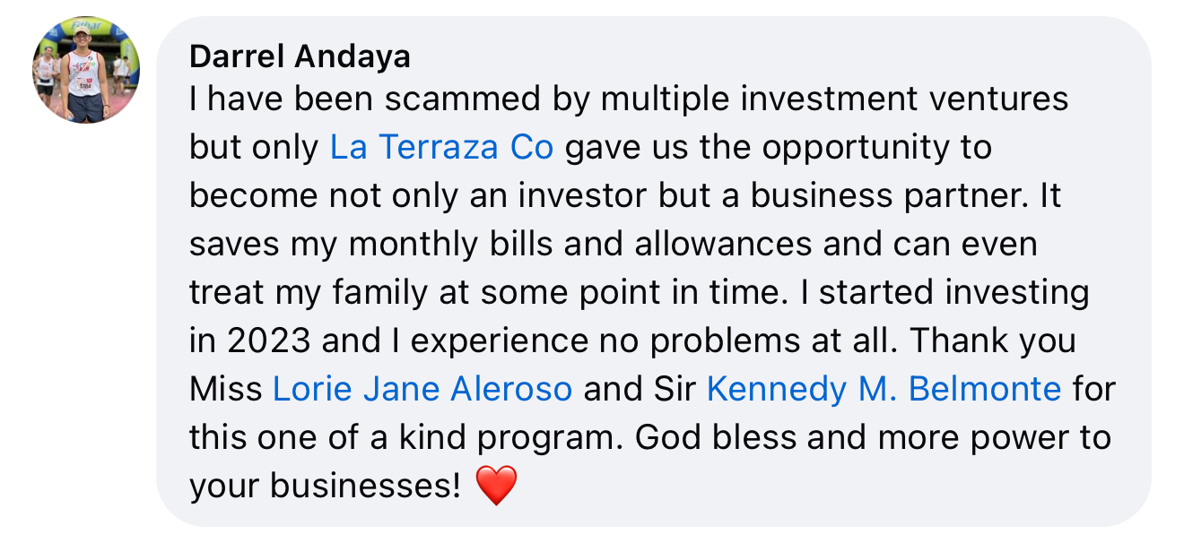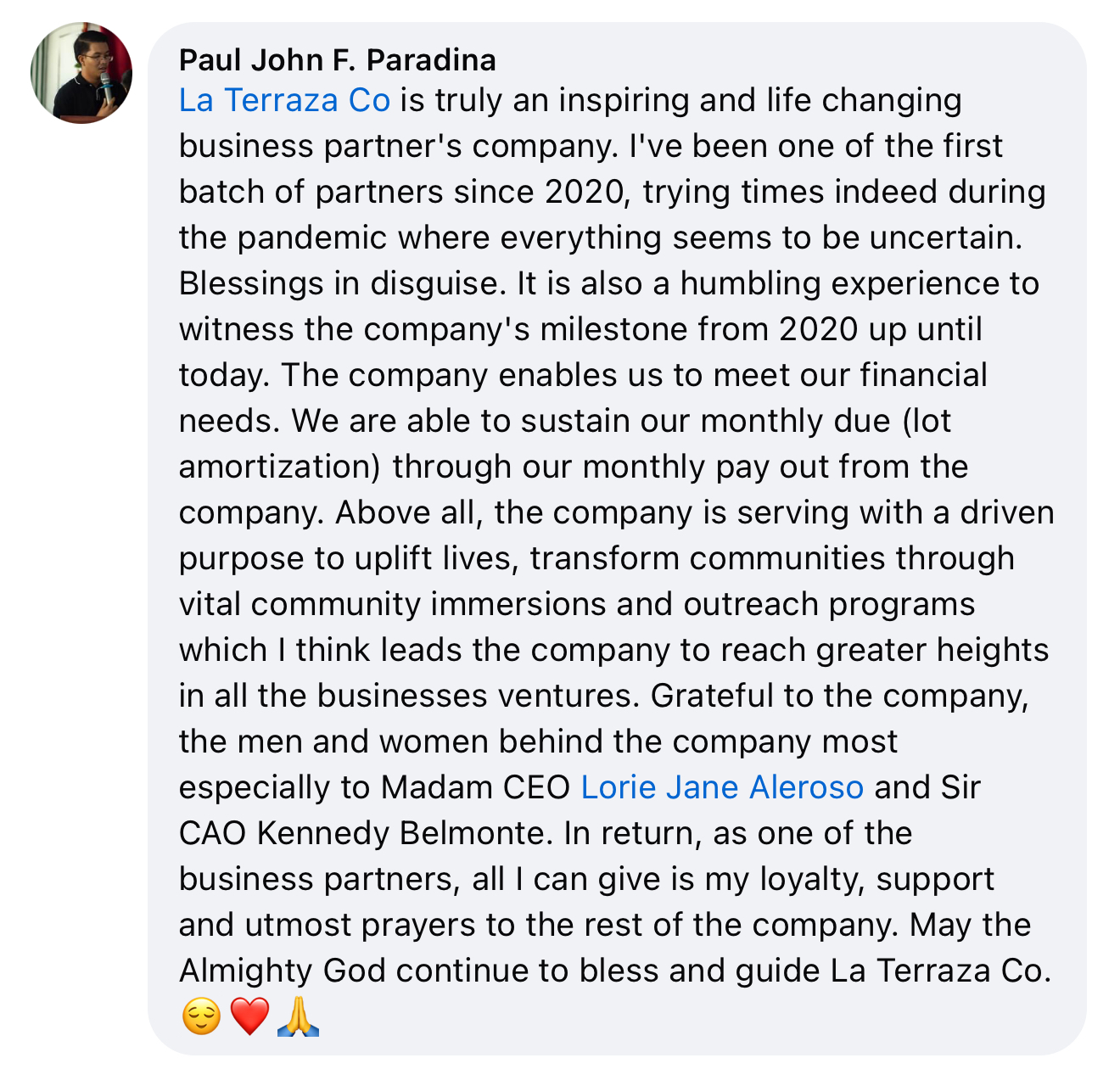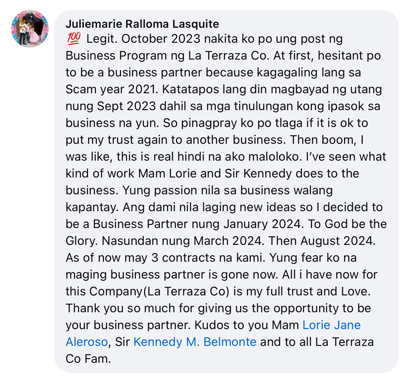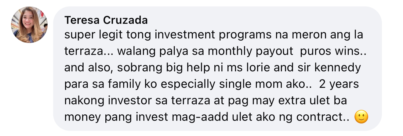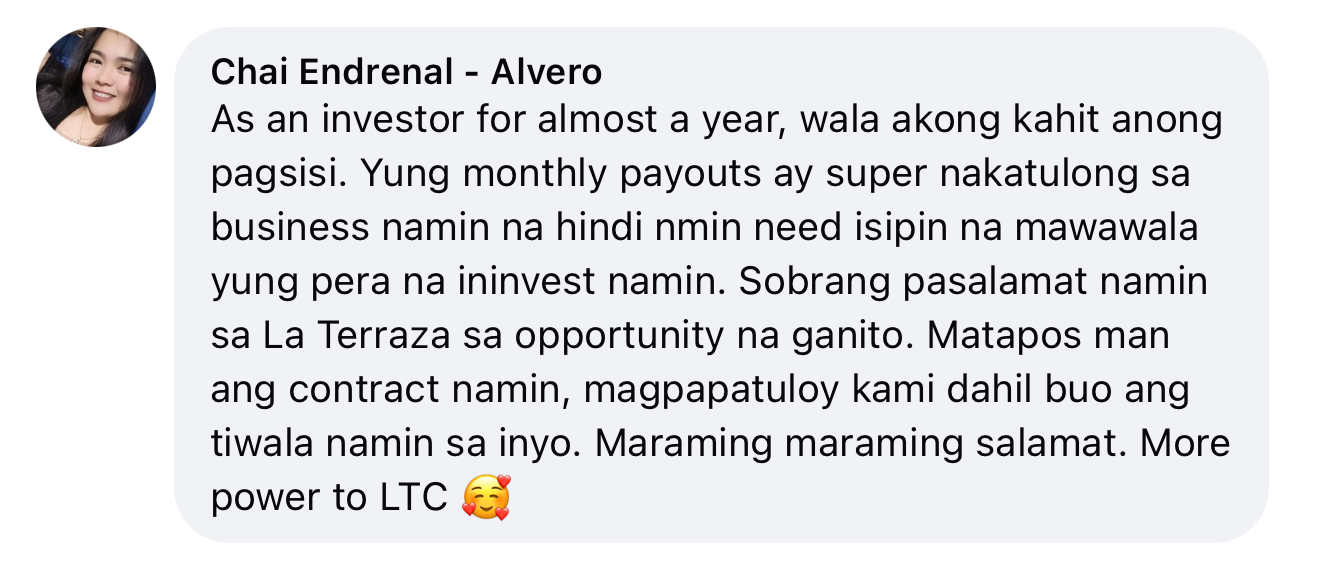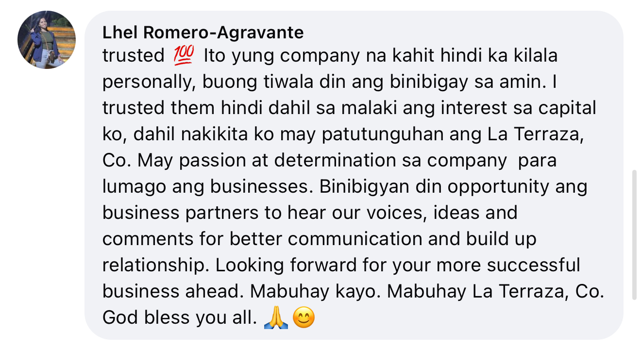 For inquiries, contact us at businesspartnership@laterrazaopc.com or +63 917 847 9109.
